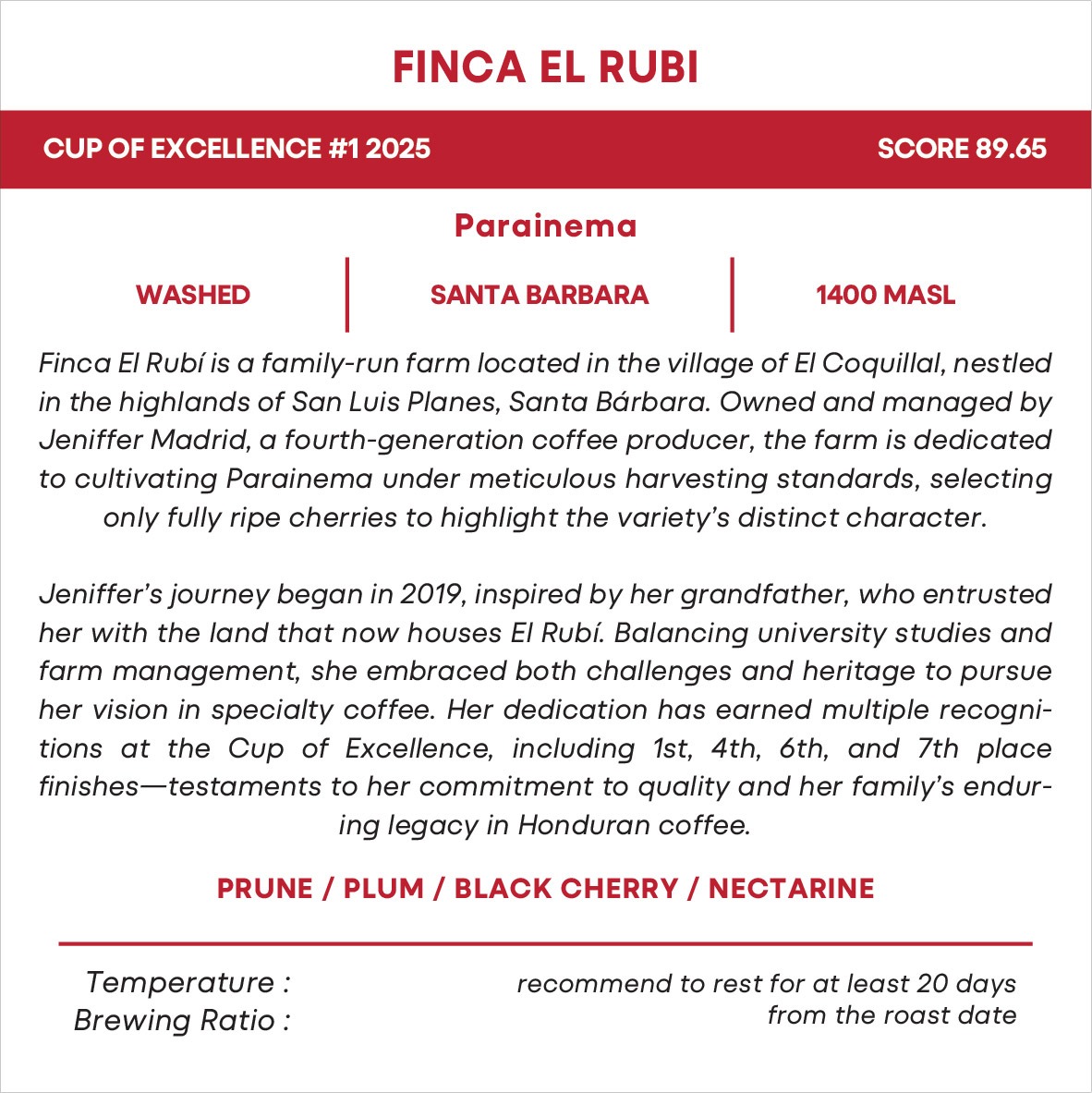 Honduras 2025 COE #1 Santa Barbara Fincal El Rubi Parainema Washed